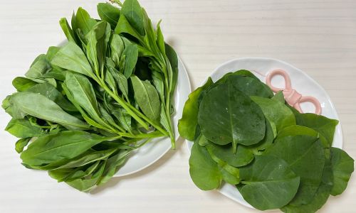 「沖縄ほうれん草」は、シンプルに茹でてお味噌汁に。葉がしっかりとしていて、風味豊かで甘みがあり、お味噌の旨味と相まってとてもおいしくいただけました。